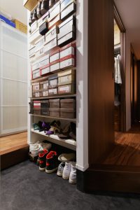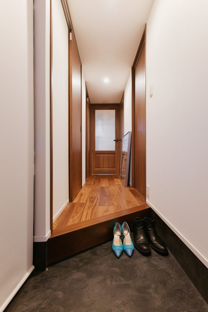 靴が大好きなご夫婦のために、玄関からアクセスできるウォークスルークローゼットは一部屋分使って贅沢に設けています。