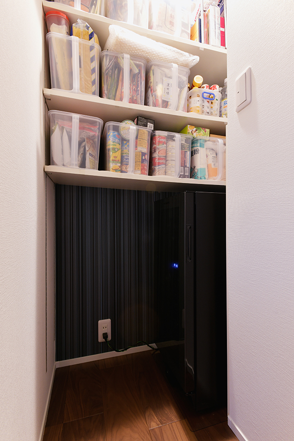 ▽TVの裏にもパイプスペースがありますが、ワインセラーを置ける収納スペースとしています