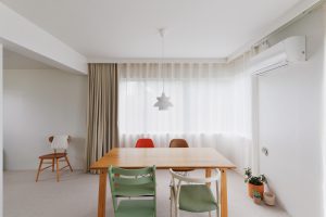 森の借景や、街を見渡す眺望が気に入り手に入れた物件。もともと所有していた絵画や家具と調和し、明るくシンプルに、建築の良さを活かすインテリアにしたい。