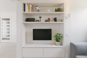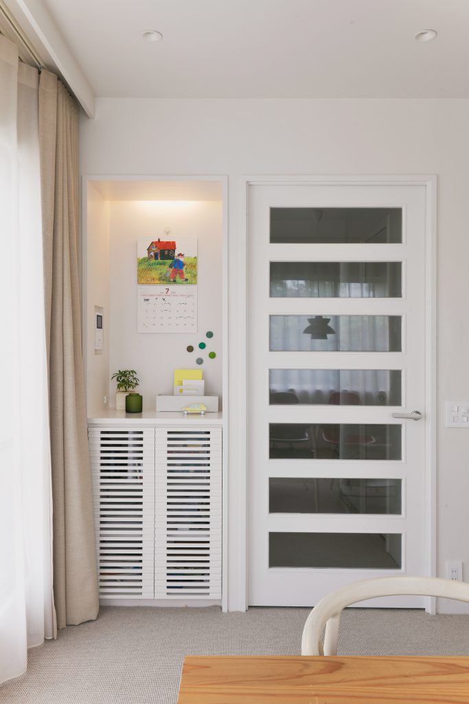 設計をお仕事にされているご主人様がご用意された設計図を元に、ミリ単位の造作家具の打ち合わせをし、ラインが整うような設計をしました。家具を主役にするために、内装仕上げはシンプルにホワイトをベースにカラースキームを整えました。