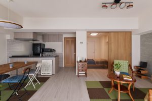 デザイン面:ナチュラルとシンプルの中間のモダンな空間とし、明るく開放感のあるしつらえとするため、床にはホワイトオーク、建具はオークを用いることでやさしい空間となりました。
