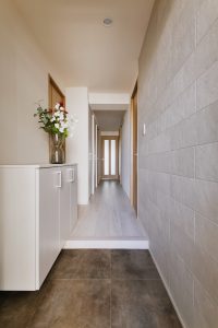 空間を広く見せる工夫:ひとつひとつが閉鎖的だった空間は、間仕切り壁を取り除いたり、商品を工夫することでつながり感を大切にできる家としました。