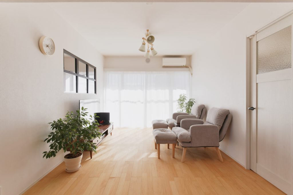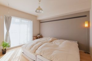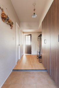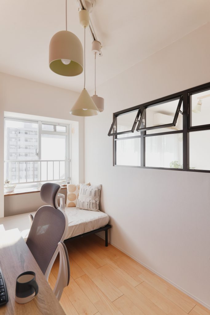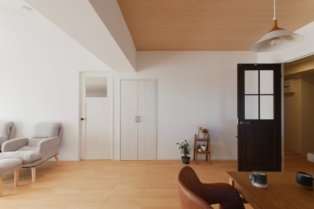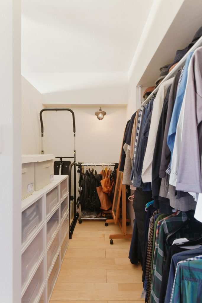 もともと1部屋だった洋室を書斎とクローゼットに間仕切り壁で2分割。間仕切り壁は天井までいかず、高い位置まで立ち上げることで、空気が繋がり、閉鎖感を感じないように工夫をしました。