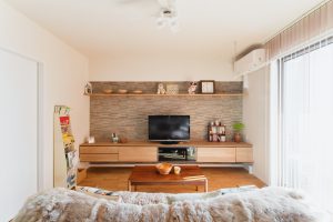 リビングは毎日見るところだから。エアコンが目立たないように、視線を考え位置取りをし直しました。