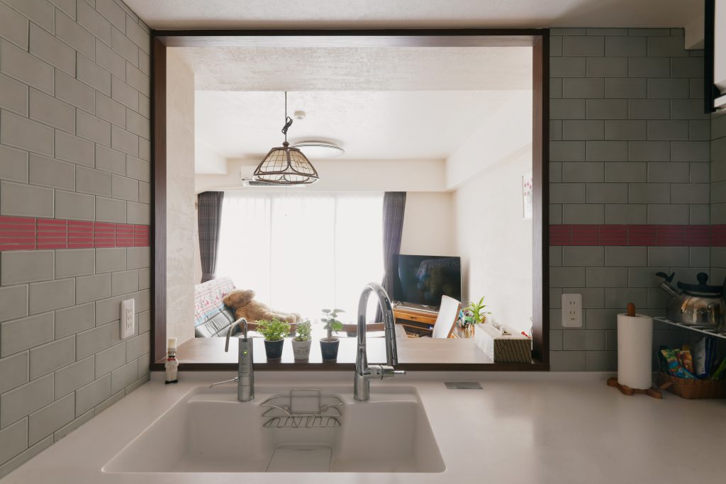 初めにお話しさせていただいた時から、素材へのこだわりやお好きなインテリアテイストをお聞きしていたので、ご要望に添えるような提案を心がけていました。お持ちの家具を今後も使いたいとお話しされていたので、家具の置き場も計画し、収納するもの、使い勝手を想定してリノベーションプランに組み込みました。ビニールクロスでは出せない漆喰の質感とそこにアクセントで設けたキッチンのタイルが映え、お客様にもご満足いただける空間となりました。