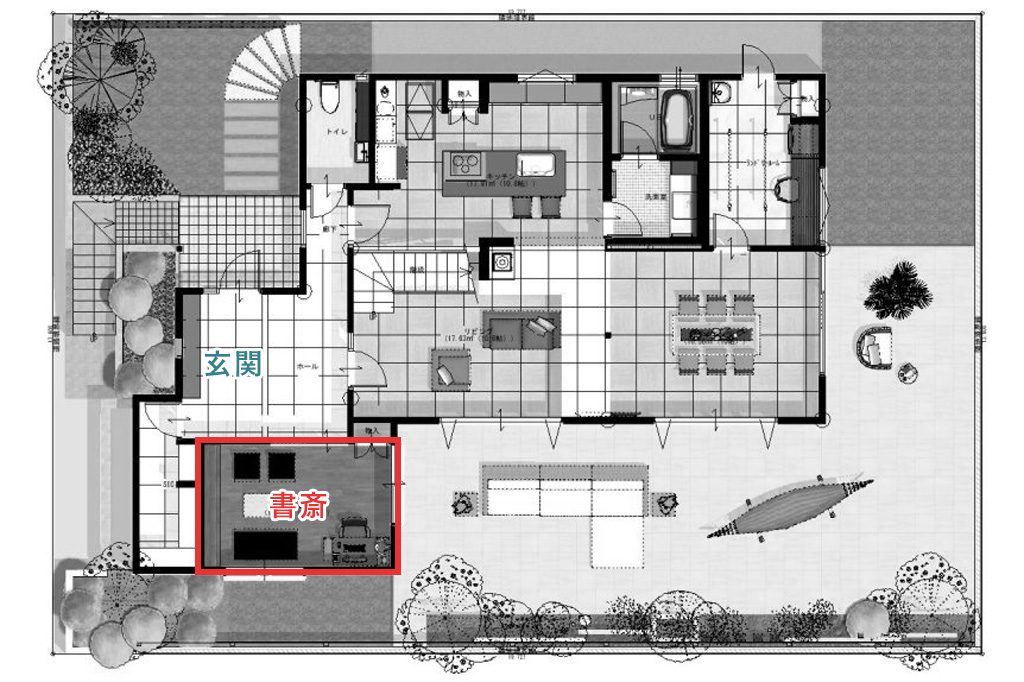 来客が多いということで、玄関の隣に書斎を設けました。