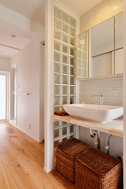 洗面だけでなく、お風呂に入るための脱衣所として、また洗濯のスペースとして多目的に使用する場合です。バスルームに隣接させ、洗濯機を設置するため、バスルームの湿気はもちろん洗濯物を干したりすることもあり、湿気対策が必要になります。調湿機能のある壁材や耐水性の高い床材などを選ぶとよいでしょう。
