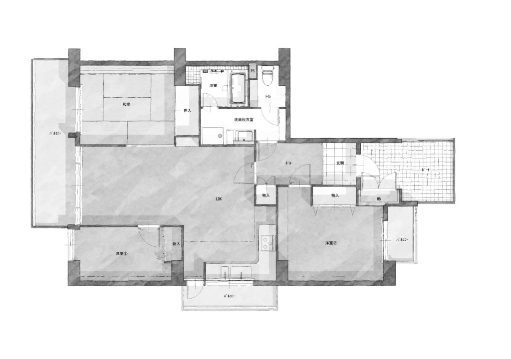 広々とした面積のある団地でしたので、各スペースにゆとりある3LDKの間取りにすることで、子育て世代に快適な住まいへと生まれ変わりました。