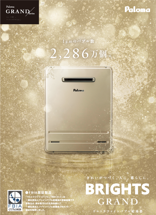 2025年に発売した株式会社パロマのウルトラファインバブル機能付きの給湯器。