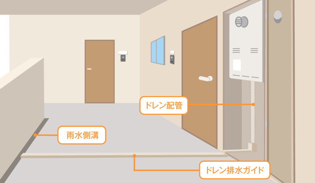 築年数が比較的浅い、新しいマンションなどで、共用部の廊下部分に給湯器のドレン排水の通路が設けてある場合では、エコジョーズの設置ができることもあります。