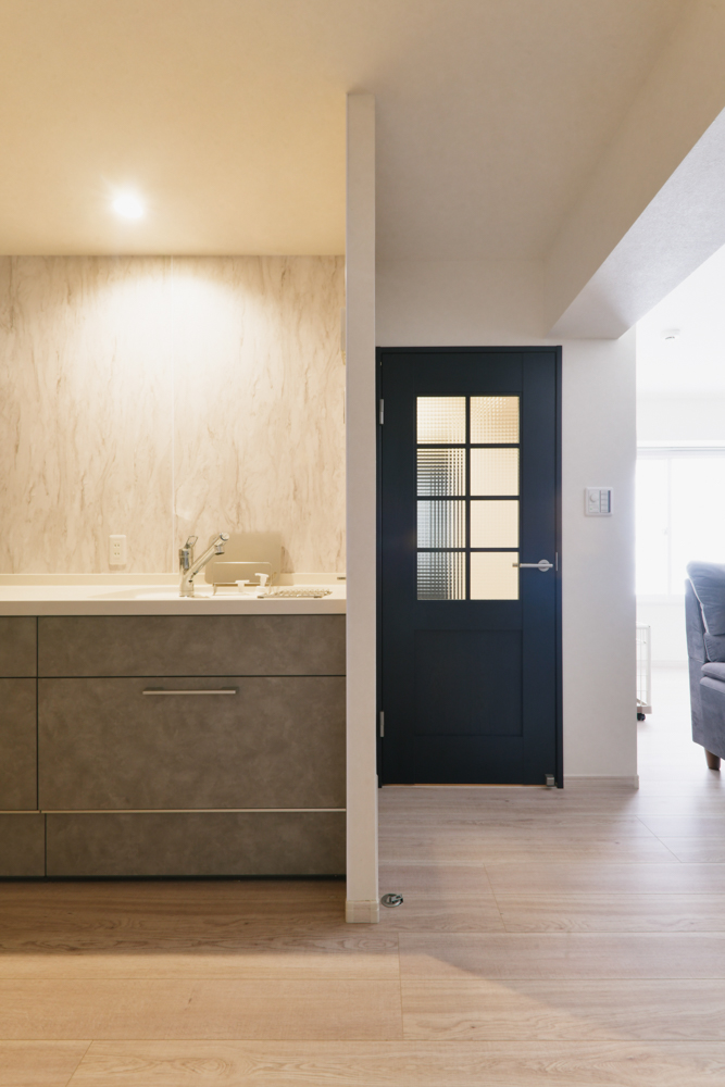 ご予算内でリノベーションをするために、収納扉や建具類は一切壊さずにシート貼りをしました。