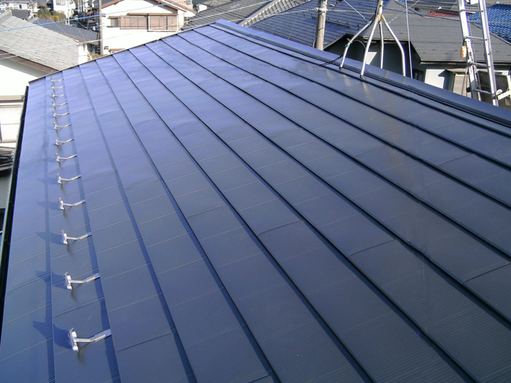 メリットは瓦の10分の1の重さで大変軽いく、隙間がないので防水性が高いです。