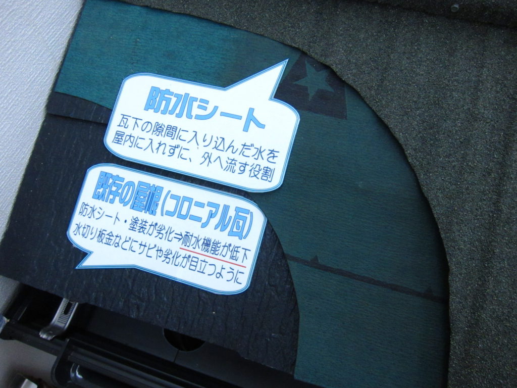 かわらの下には防水シートを敷き、雨水の浸入を防ぎます。