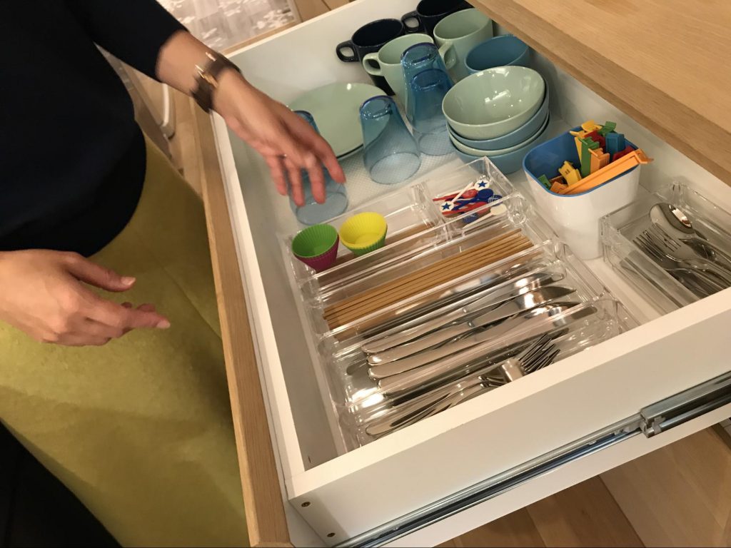 この場合は、物のサイズに合った使い易い収納用品を使って、物の指定席を作ってあげることが大切です。