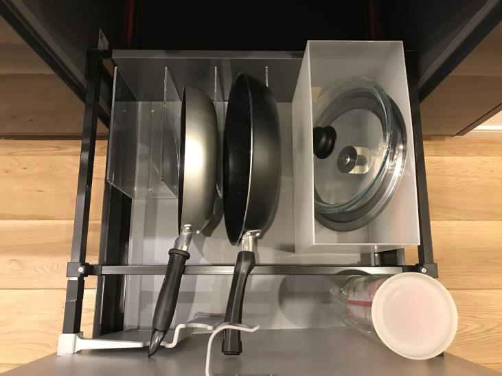 フライパンは面積が広いため、平面に置いてしまうと収納スペースが埋まってしまいがちです。