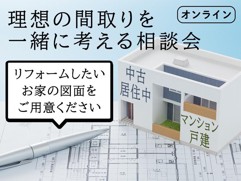 リフォームされたい家の図面をお持ちの方は、受付からのご案内メールに画像添付、ご返信いただけますと、当日スムーズにご案内できますので、ご協力をお願い致します。