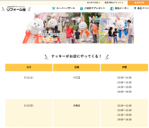 そして、ファン数が急上昇中の、ホームテックのマスコットキャラクター「テッキー」も、リフォーム博で活躍中です!