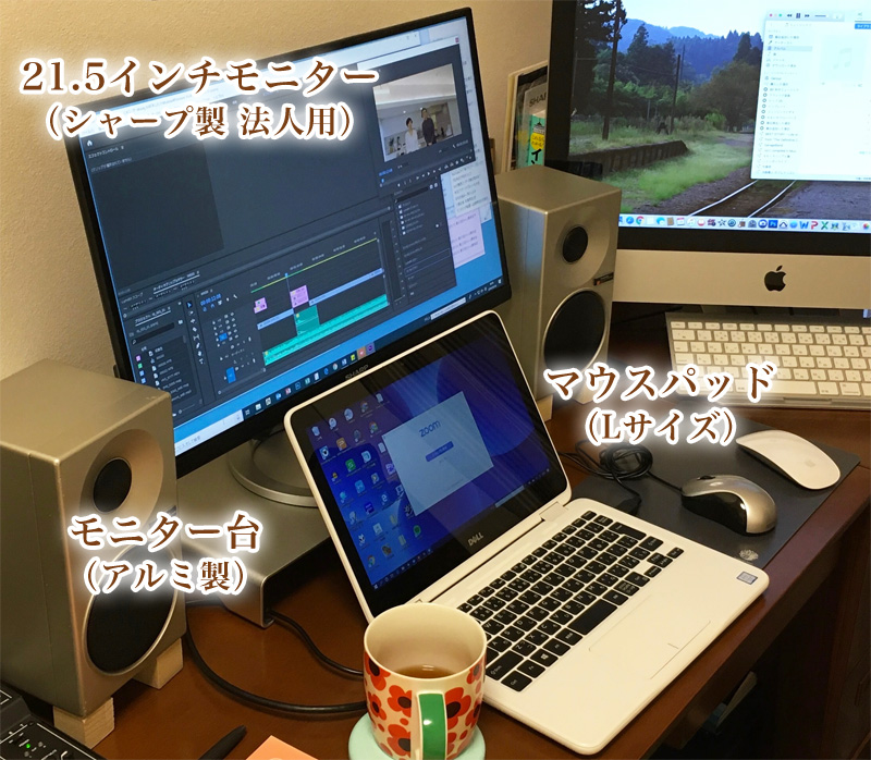 当初iMacをメインに据えてましたが、リモート接続がすぐにフリーズして実用に耐えなかったので、21.5インチのモニターを導入し、11.5インチのWindowsノートPCを繋いでメインとして使うようにしました。