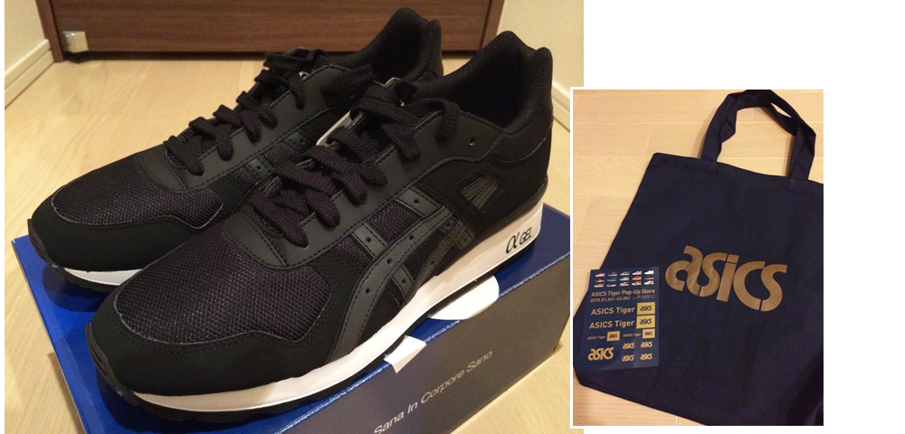 輸入品は結構出回っているのですが、これはアシックスが「asics tiger」という80~90年代のモデルをリメイクするラインを出したときに、その1つとして国内正規販売されたもの。(バッグとシールをオマケでくれました)