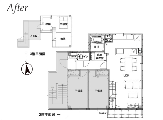 調布市 R様邸 ■建物種別:戸建て ■ご家族構成:ご両親、ご夫婦、お子様2人 ■リフォームのきっかけ: ・10年前に中古住宅を購入し2世帯住宅として住み替えた。 ・子供の今後の成長を考えて、うまく使えていない屋根裏を部屋にしたい。 ・キッチンを広くしたい。 ・和室で遊ぶ子供の様子が見れないので部屋を繋げて広いLDKにしたい。 ・収納スペースも確保したい。 ■リフォームのポイント: 水廻りは当初お考えではなかったが、LDKを広げることを可能にする為に、水廻りのゾーニング変更を提案。より広く感じていただく為の工夫として吹抜とスケルトン階段を採用。家族の中心であるリビングをより繋がり感のあるものに。収納力は3階の床を延ばすことで解決。元の1.5倍以上の収納スペースを確保した。 ■性能向上で配慮した点: 屋根裏にポリスチレンフォーム(熱伝導率0.024/t=50)を敷設し断熱性能向上。吹抜となっても元より快適さをUP ■施主様のご感想: 矛盾しちゃうような私たちの要望もうまくまとめてくださり、まとまりある素敵な空間にしていただきました。吹抜にもなったことで面積以上の広さを感じています。子供達もすごく喜んでくれていて、子供達のお気に入りの場所になった階段から学校であったことを話してくれるのを聞いているのが今の私の至福の時です。 ■リフォーム後の至福のひととき: リフォーム前:子どもの成長を見守っているとき。 リフォーム後は子どもが階段に座って学校であった話をしてくれるのを夕飯の準備をしながら聞いているとき。 |
