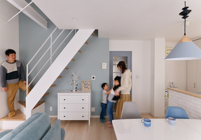 至福実現度・増加度 子どもの成長をより身近に、より多く感じられる工夫がなされている FHEデザイン 家族との距離の近さを感じつつ、広さを感じるような視線を配慮。家事動線のコンパクト化。 アイディア 水廻りの配置変えによって、お客様の想像以上の広さを実現しつつさらに見通しを良くしたことで期待以上の広さを得られる工夫がなされている チャレンジ メーカーものでは作成不可能な階段を、大工造作・鉄骨・メーカー材を組み合わせて実現している。 お客様理解度・共感力 広さと、収納力、階段新設というスペース的に矛盾した要望をかなえる為に提案の幅を広げている 機能性・性能向上 吹き抜けになっても断熱性能を上げることで快適さをUPしている。採風、採光に配慮。 |
