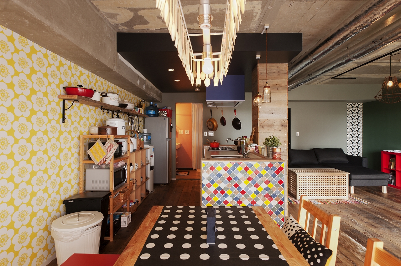 シンプルな間取りですが、家具や建具はオーダー、左官やタイルで意匠付けし、