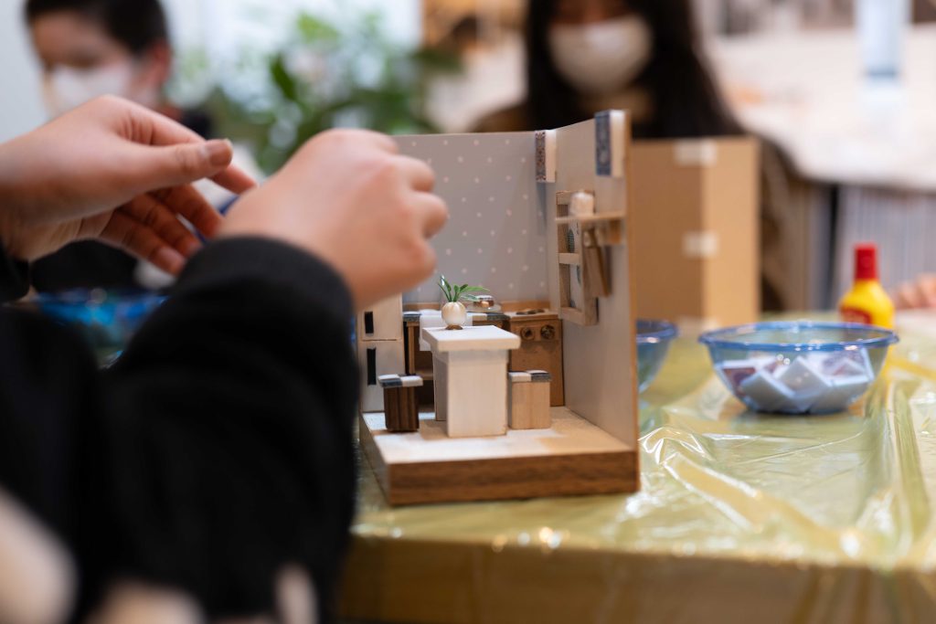 ▽リフォームプライス国立店で開催した際の様子。みんなもくもくと作業をしています。