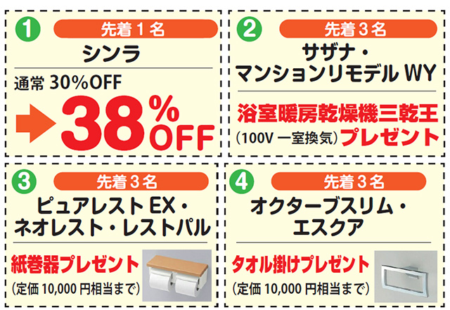 指定商品のご成約でオプション品プレゼントや通常よりお求めやすい値引率でご提案致します