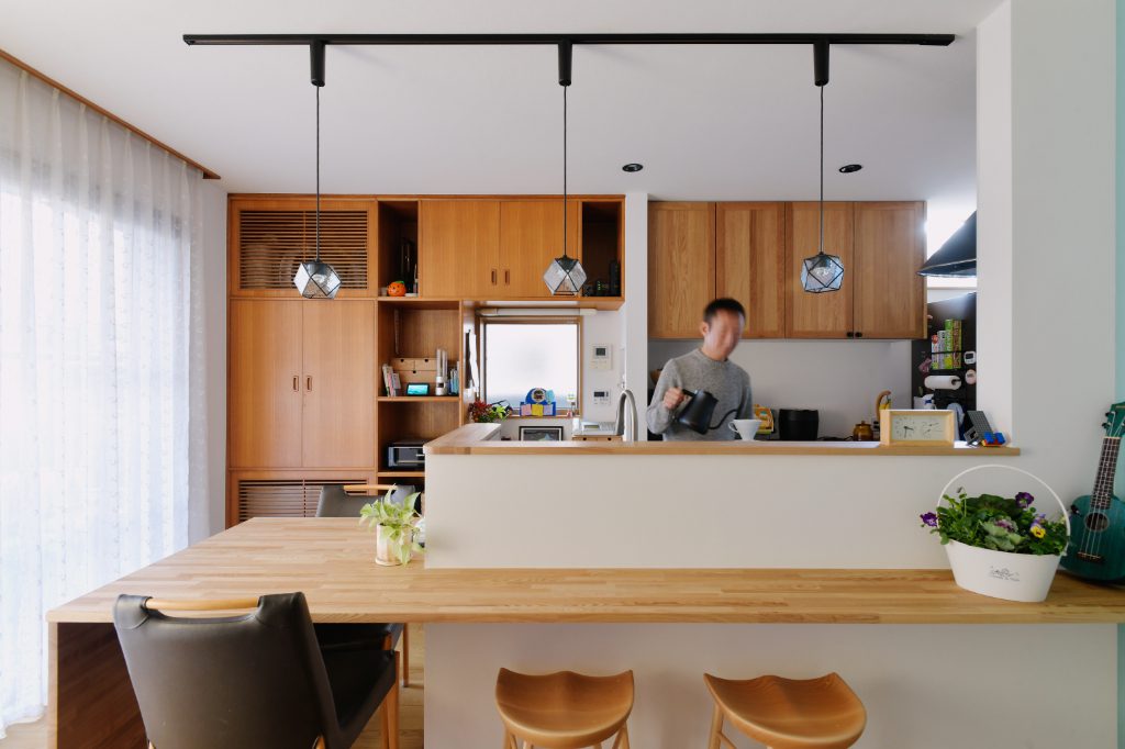 「叶えたかったカフェのような空間でコーヒーをゆったり楽しむということが実現しました」と、リフォーム後にお客様のご自宅にお伺いした際に幼稚園生のお子様が入れてくれたコーヒーを一緒に飲みながら教えていただきました。天然素材を使い、照明器具も陰影のつくような素敵な空間を造作出来ました。わたしたちもゆっくりと落ち着きたくなる空間になりました。またコーヒーごちそうしてください。
