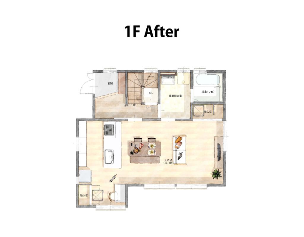 リフォームの計画にあたり、ご主人様にパースを用意いただいたりと、細部のディティールにまでこだわりながら、設計をしていきました。
