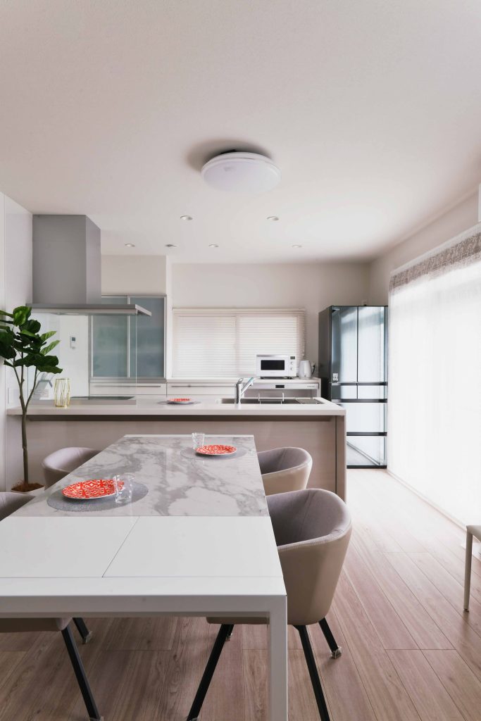 1階部分の一部も子世帯家族のスペースに取り入れる事で、ご家族それぞれが程よい距離感で過ごせる間取りにする事ができました。また、これまでになかった子世帯用のリビングスペースを確保する事で、家族揃ってくつろいだり友人を招く事もできるようになりました。