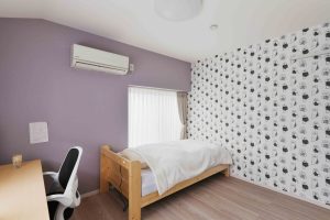 ▽息子さんのお部屋。閉鎖感を抑え、玄関からの自然光を取り入れるため室内窓を設けています。