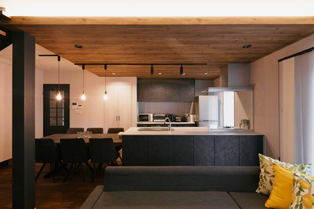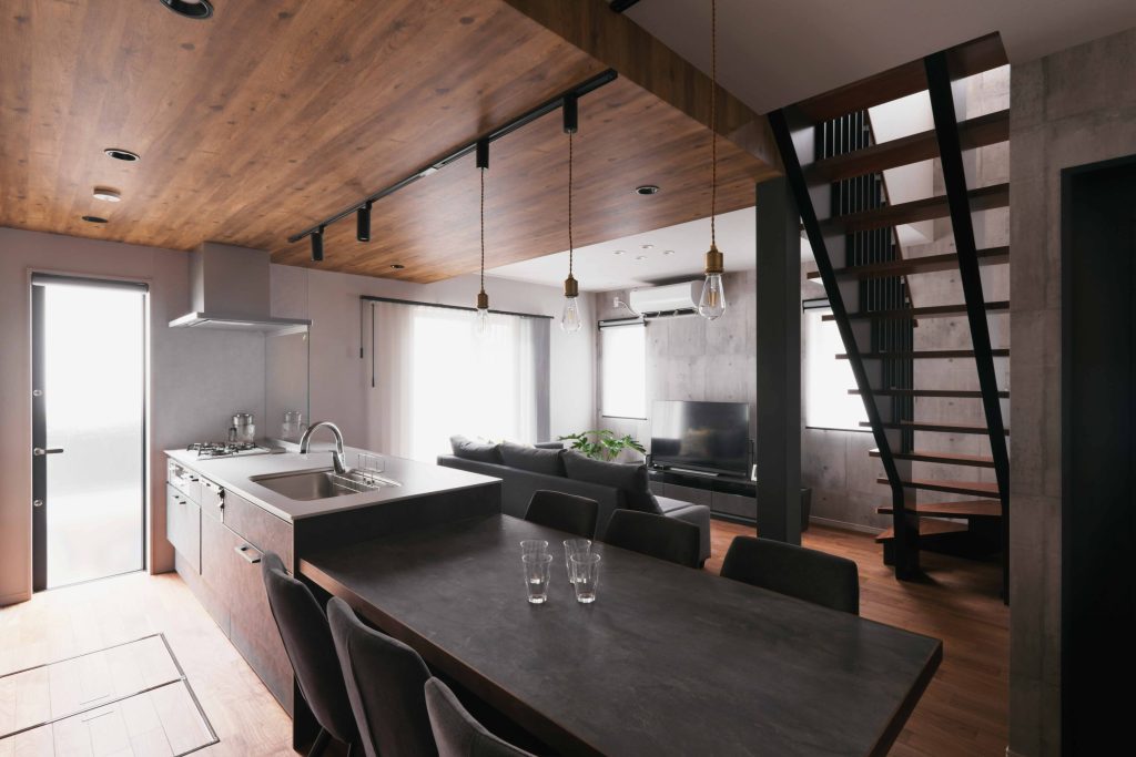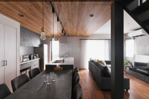 家族がみんなリビングを通るので必ず顔を合わせる間取りとなった。キッチンとリビングとダイニングの配置もよくTVを見ながら家族を見守りながらお料理ができるのも気に入っている。
