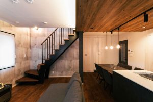 階段をリビングに取り込むことによって無駄なスペースなく面積を有効活用できた。