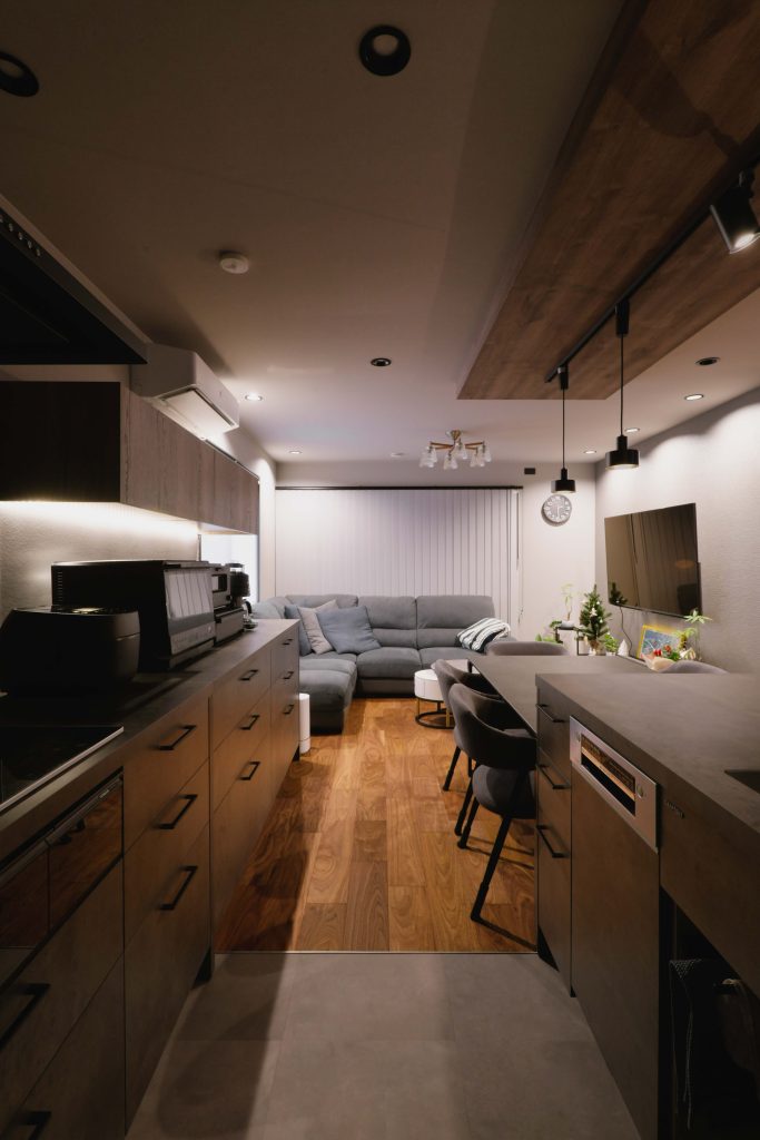 玄関ドアを開けると、グレーを基調とした、モダンな空間が広がり、とても落ち着いたお家になりました。LDKへ向かうと迎えてくれるグラフテクトのキッチンの存在感がとても魅力的です!これから新しいお家でご家族みなさんが、楽しくくつろいで頂けると嬉しいです。