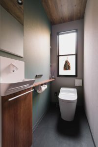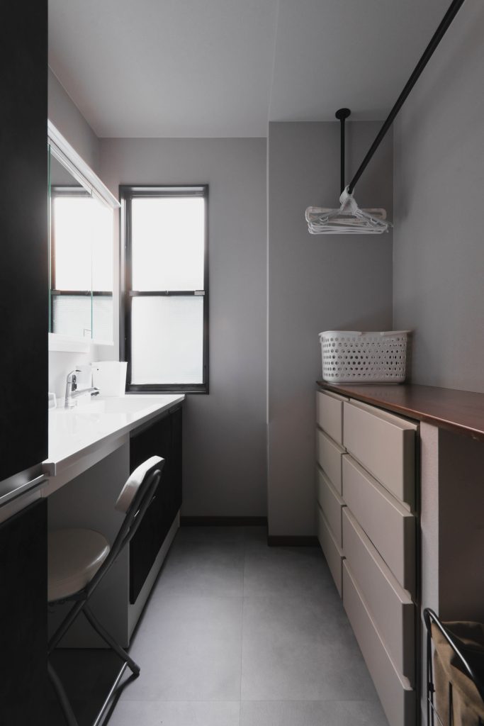 生活感をなるべく感じさせないように、洗面室と脱衣室を分けています。