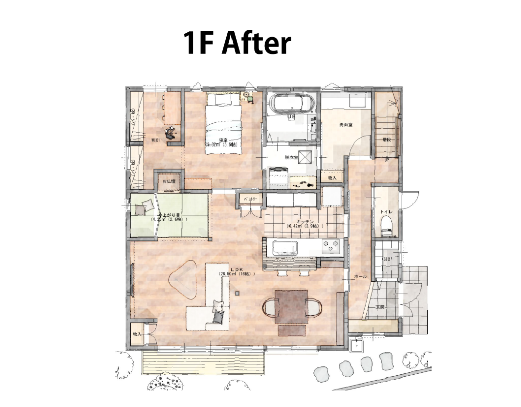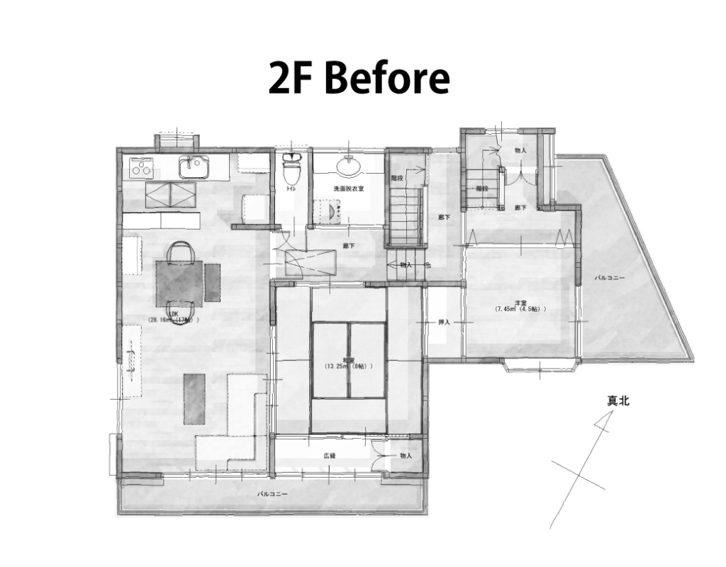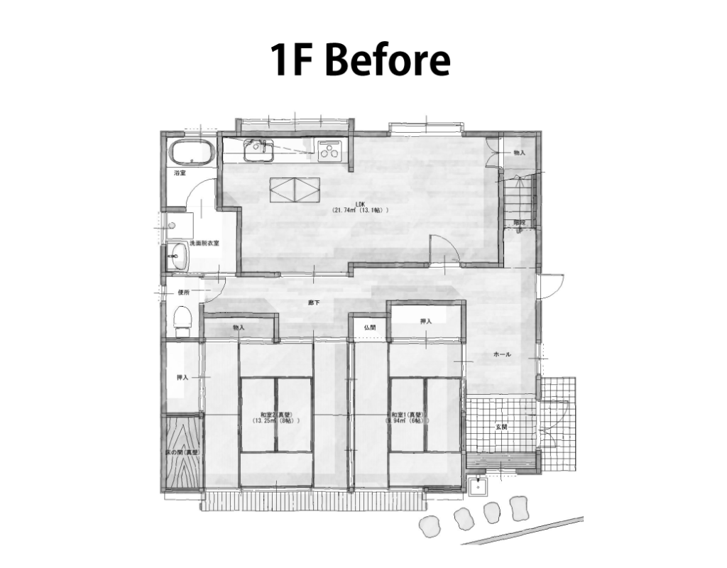 経年劣化もあり、生活動線を見直して二世帯で住めるようにするため。