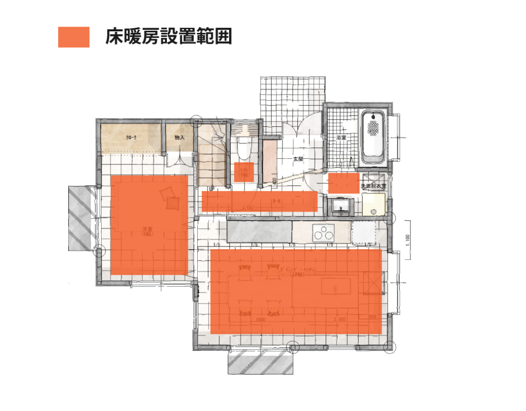 玄関〜廊下、リビングダイニングと電気式の床暖房を入れています。既存の床は壊さずに、床暖房とフロアタイルを上貼りすることで、コストを抑えつつ、暖かい住まいを実現しています。