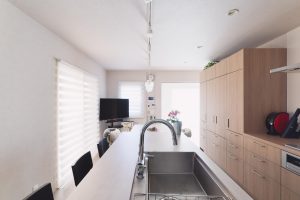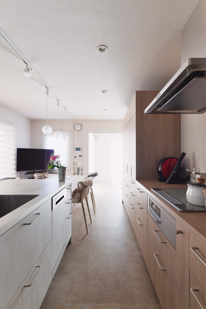 2列型のキッチンで、ダイニングと横並びにしたことで、料理の配膳がとても楽になりました!