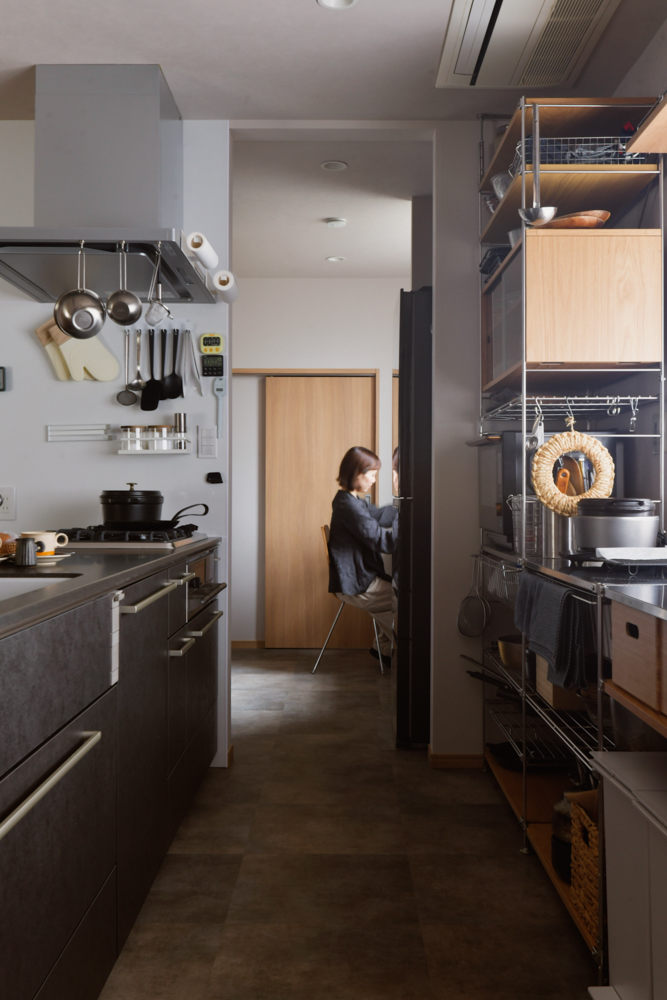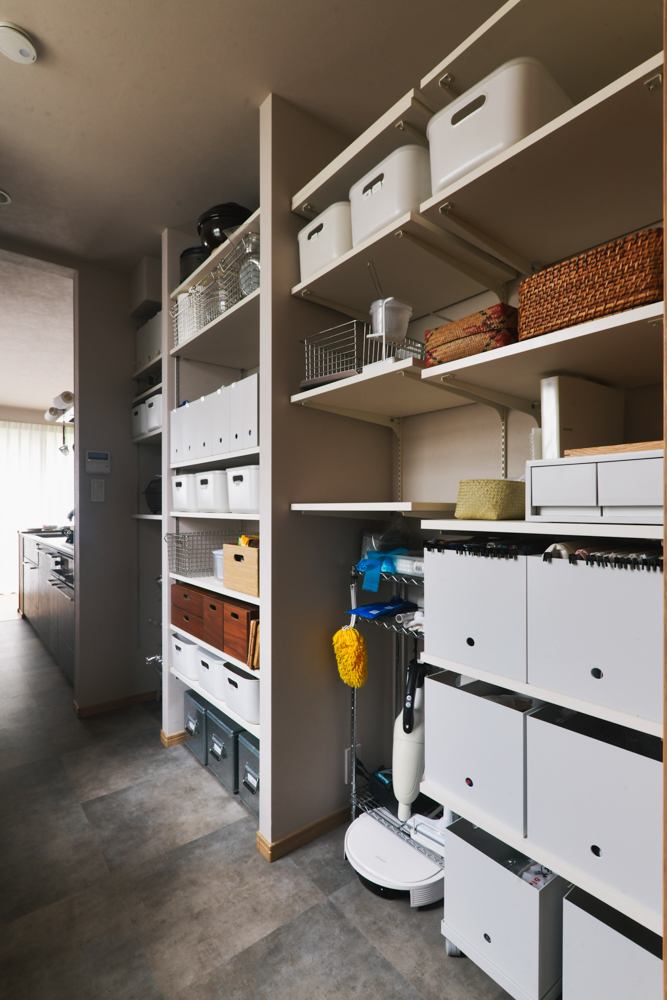 M様ご夫婦は収納上手で、キッチンとパントリー、洗面空間の収納は全て無印良品の商品を組み合わせて造っています。