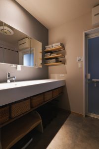 設計担当がお施主様と同じ子育て世代ということもあり、洗面空間が近くにあると何かと便利というアドバイスのもと、採用に至りました。