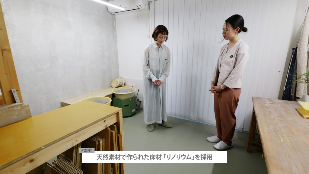 アトリエの床材はリノリウムを採用