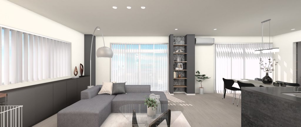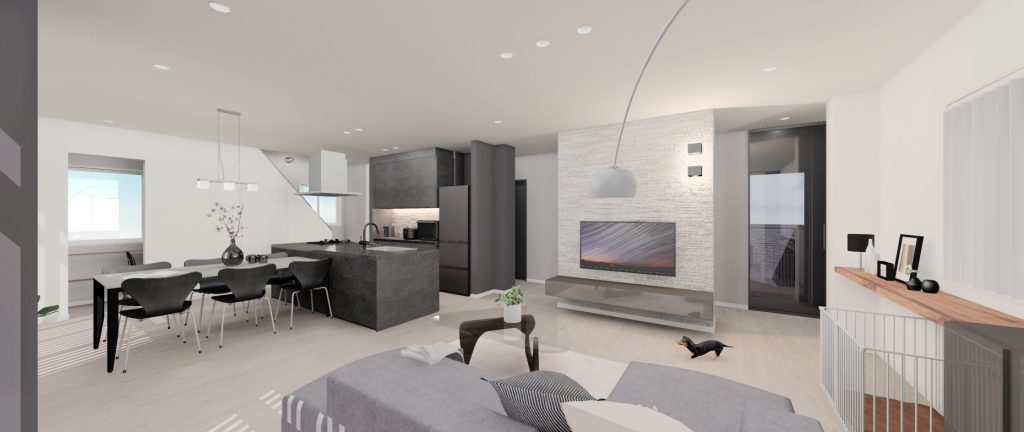 今回のリフォームのテーマであるモダンなインテリアテイスト。プラン提案の際には、イメージが湧くようにパースを作成し、完成後のイメージのすり合わせを行いました。