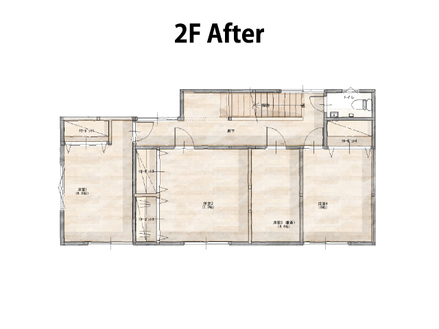スケルトンに近い形のリノベーションで断熱性能などの見えない部分もしっかりと向上させた上で、フロアタイルが続く23帖の大空間LDKや、お二人の念願だった「趣味の部屋」、各所に設けた収納など、たくさんの「好き」を形にするお手伝いができ、私も毎回のお打ち合わせがとても楽しかったです!