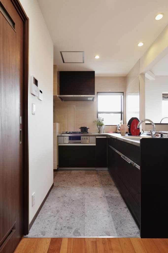 現状の間取りでは、リビングダイニングは広いのですが、キッチンから離れているので人が集まった時に会話が出来ないのがご不満でした。庭に奥様の好きなヒメシャラの木があるので、庭の見えるキッチンをご要望。キッチンと和室の繋がりは気に入っているので出来れば残したいとのことでした。