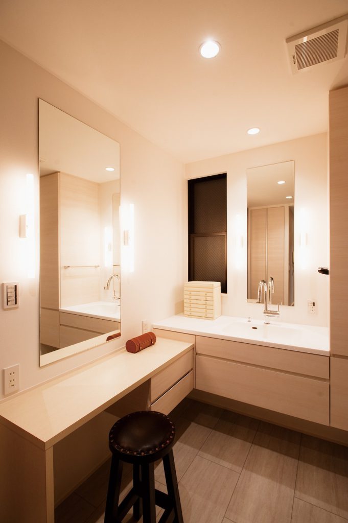 Y様の職場は白を基調とした空間。そこで、キッチンの面材やオーダーメイドのテレビボードは対照的なダークブラウンを配し、仕事場とは異なるシックなデザインを提案しました。