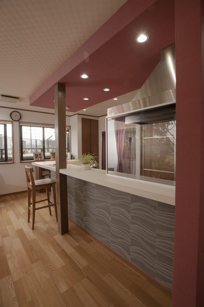 お客様を招いてホームパーティーをすることが大好きというお客様のために、オープンキッチンを提案しました。キッチン前のハイカウンターでは、簡単なお食事をとることができ、来客中も会話を楽しみながらお料理することができます。
