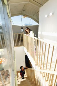 そこで、鉄製の階段を取り外し、新たに床を作り直すことで、木製階段を設置。小さなお子様が転落しないように、階段の周囲には木製の柵と手すりを取り付けました。