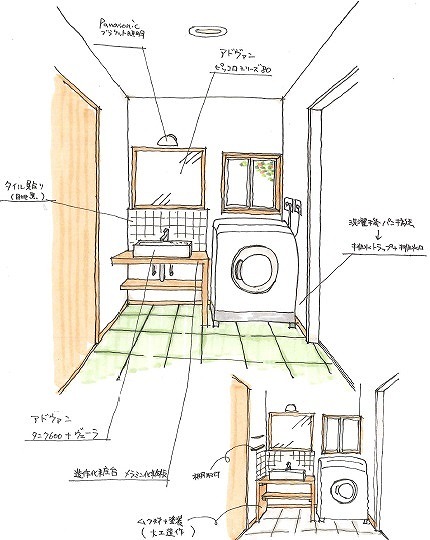洗面台:造作(LIXIL、名古屋モザイク)