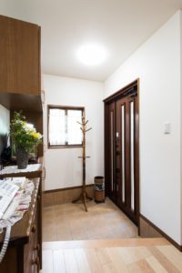 玄関側から生活感が垣間見られない様、新しい壁を立てました。
